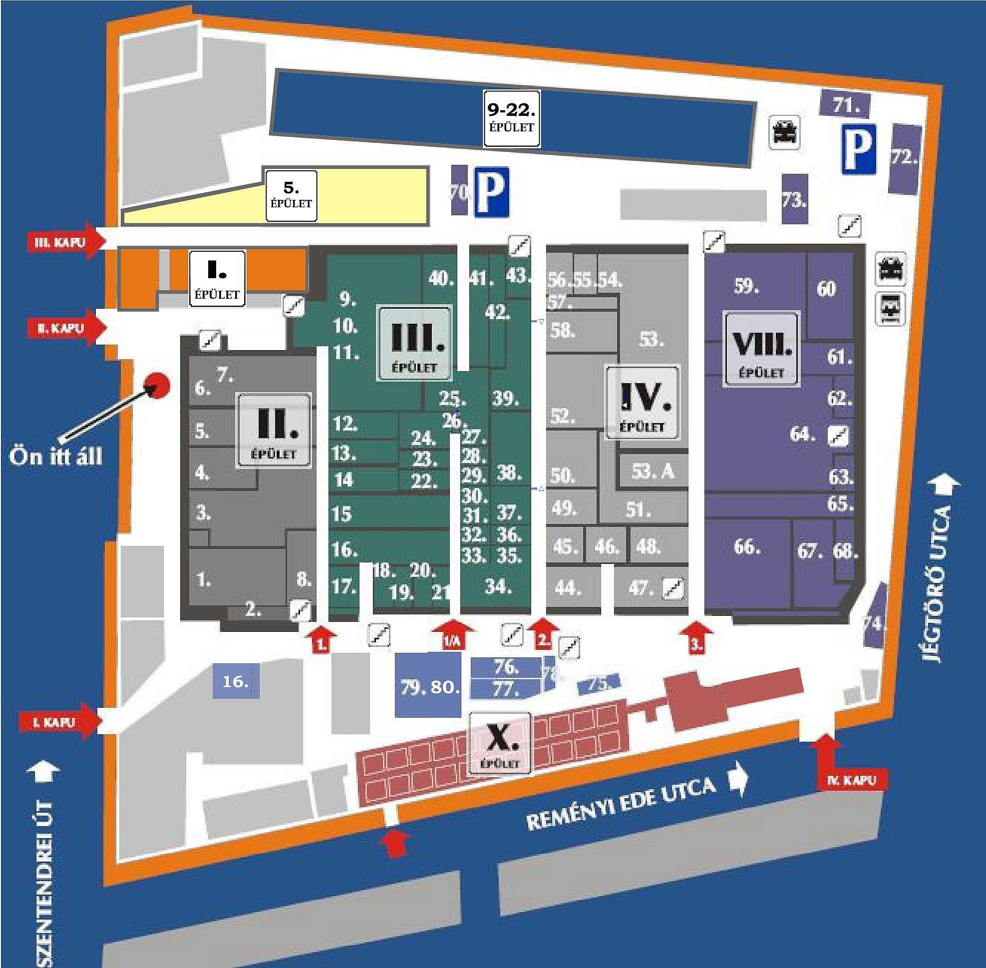 Public parking area 0306 starts at the north side of the site, at Auchan. Parking fee is HUF 175 / hour there.