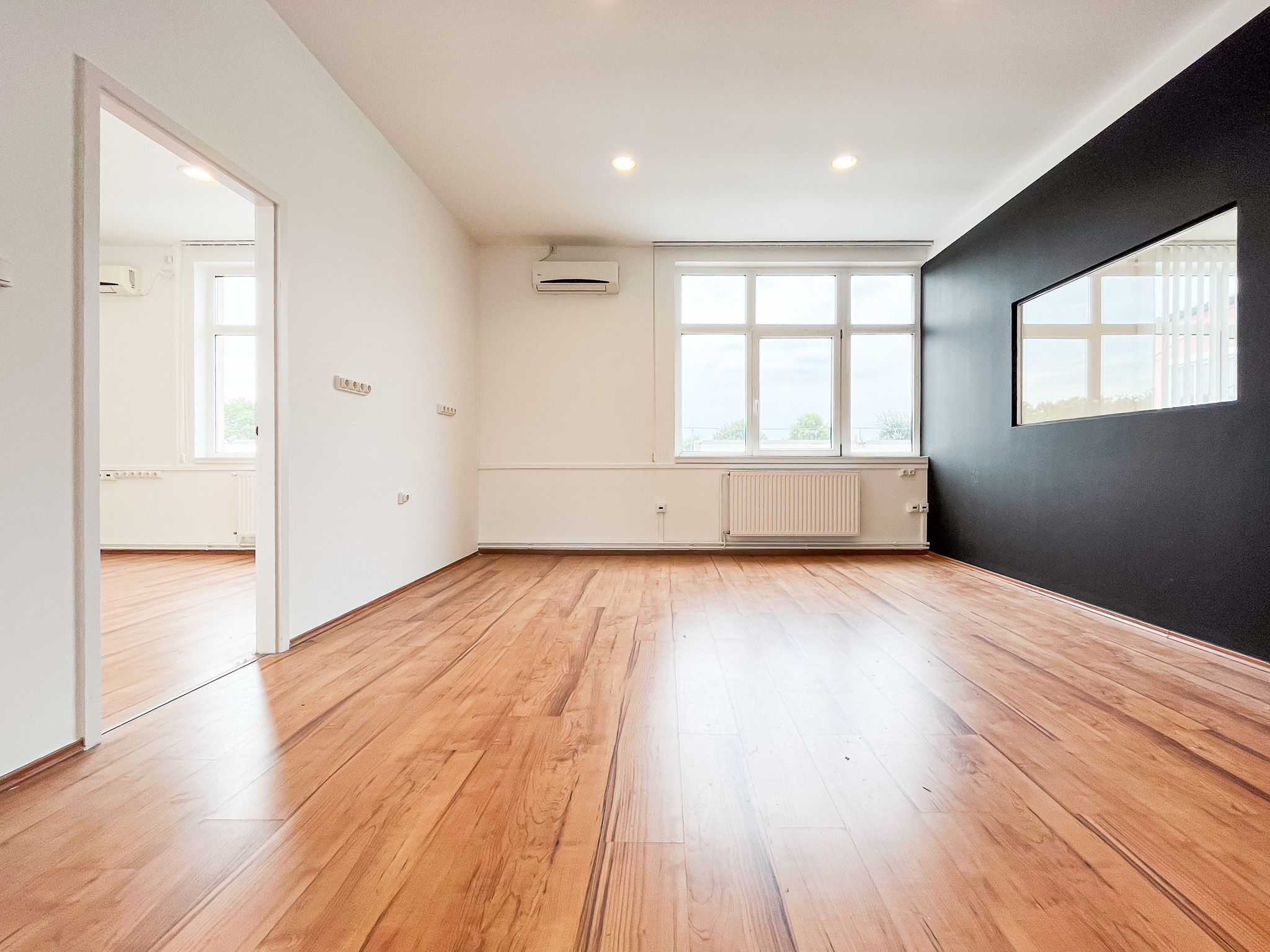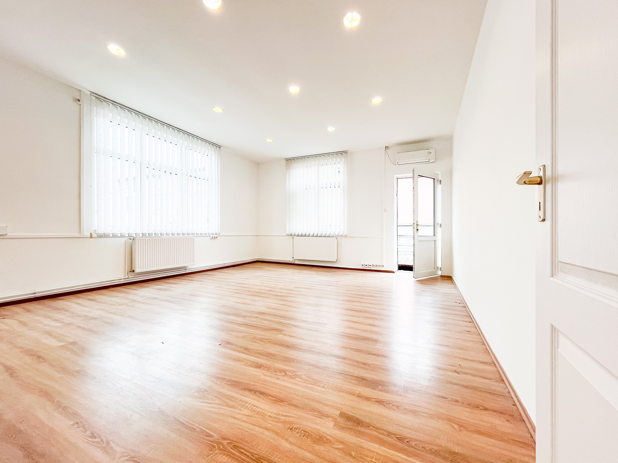 Világos klímázott iroda helyiségek, vezetői iroda, tárgyaló és szerver kialakítva.