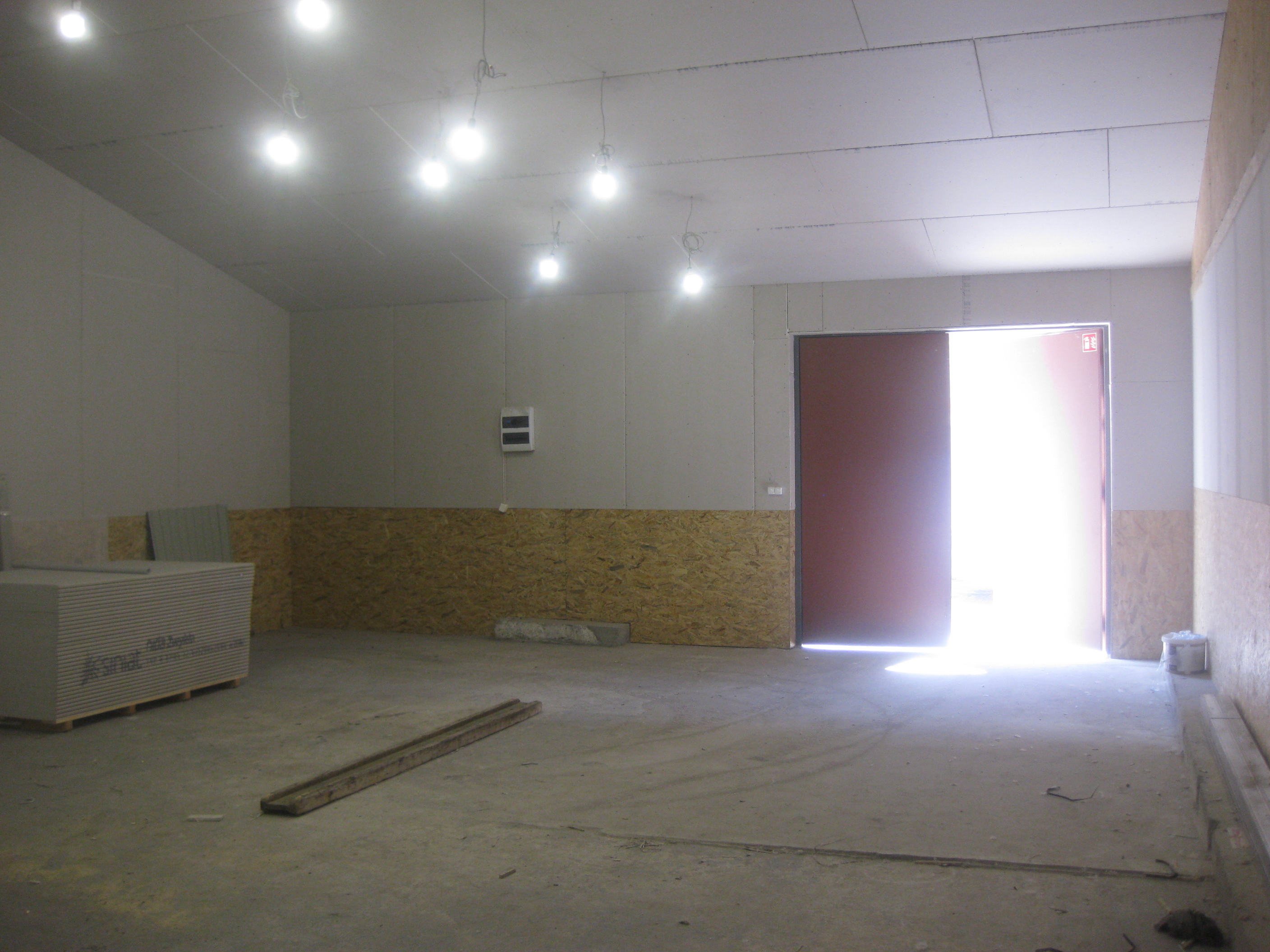 Hőszigetelt oldalfalakkal, két kapuval kialakítva.