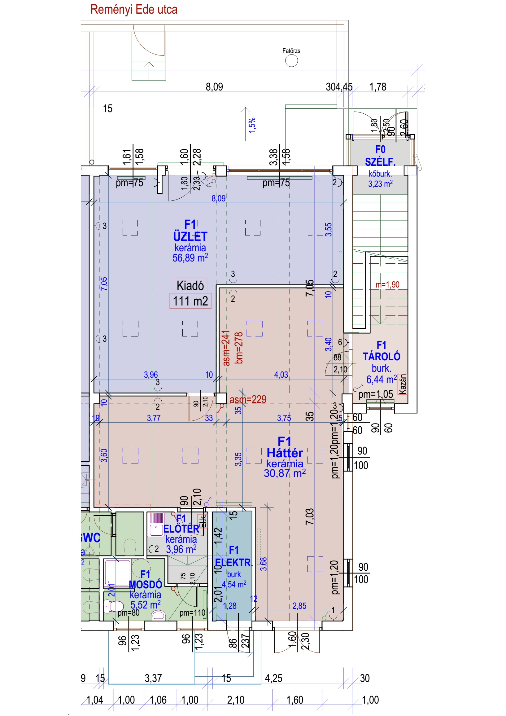 Üzlettér, háttérhelyiség, raktár és vizesblokk