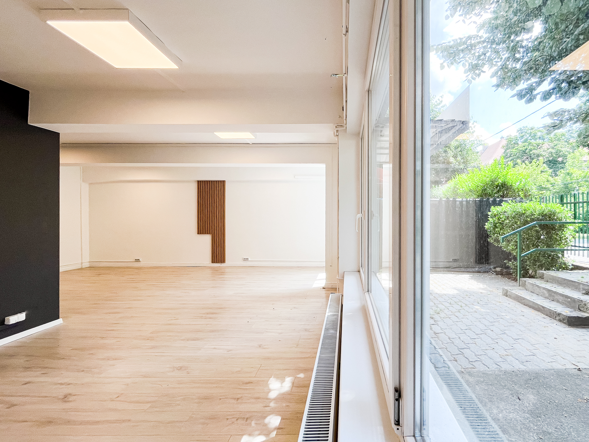 Kiadó üzlethelyiség az üzleti központ X. épület földszintjén a Reményi Ede utcai bejárat mellett, bemutatóteremnek is alkalmas.