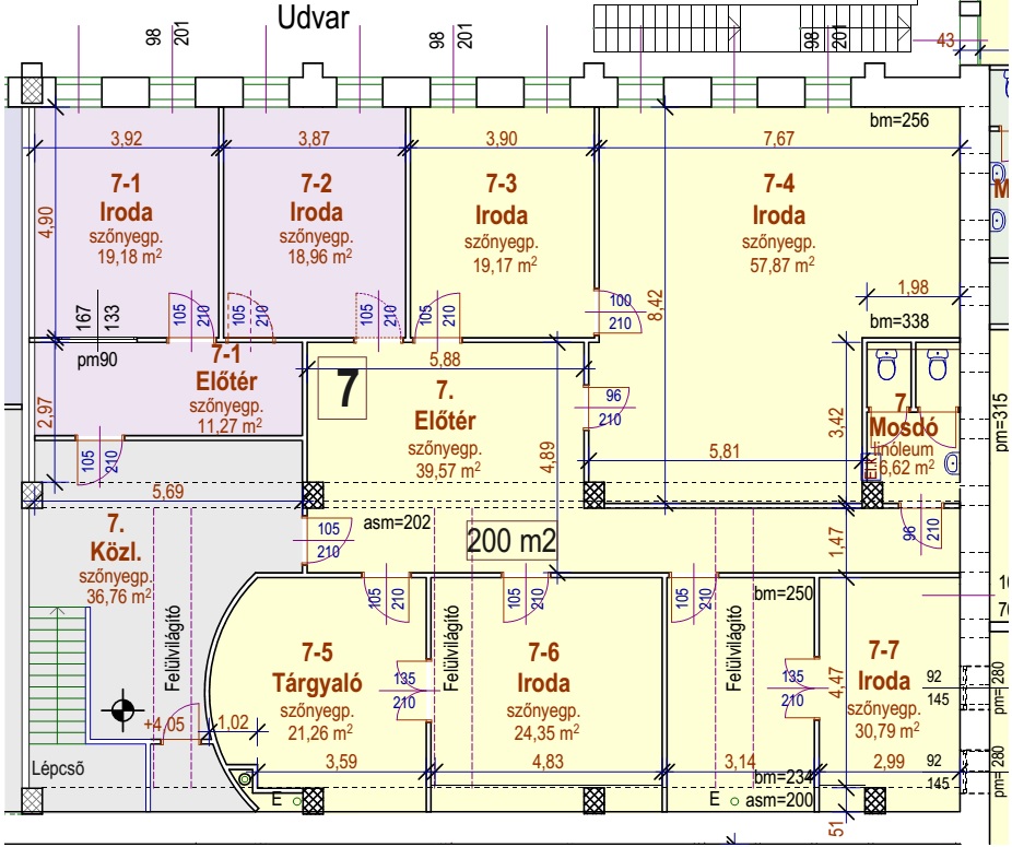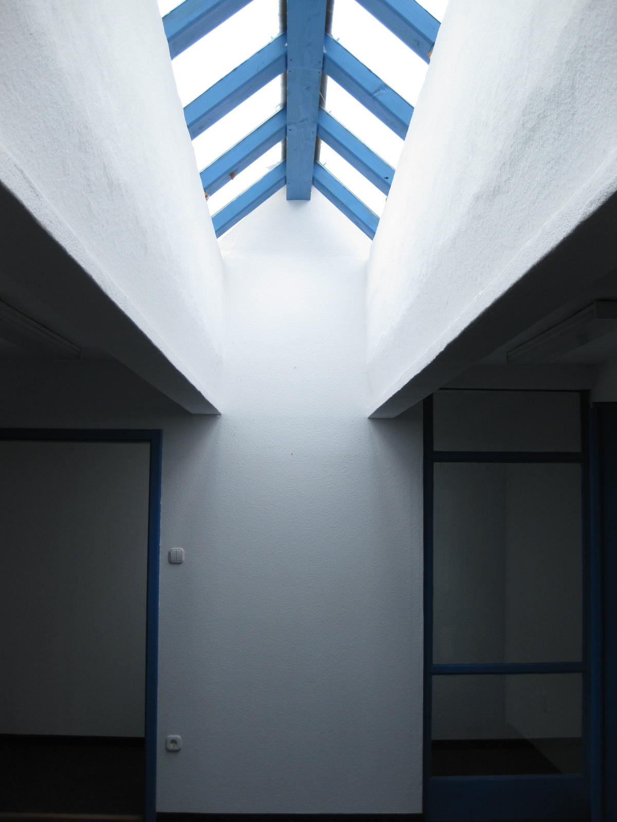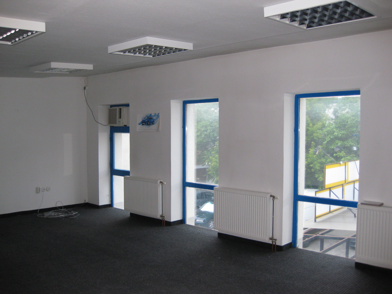 Felülvilágítós és padozatig leérő ablakokkal ellátott emeleti iroda „felső B kategóriás” üzleti környezetben „alsó B kategóriás” áron.