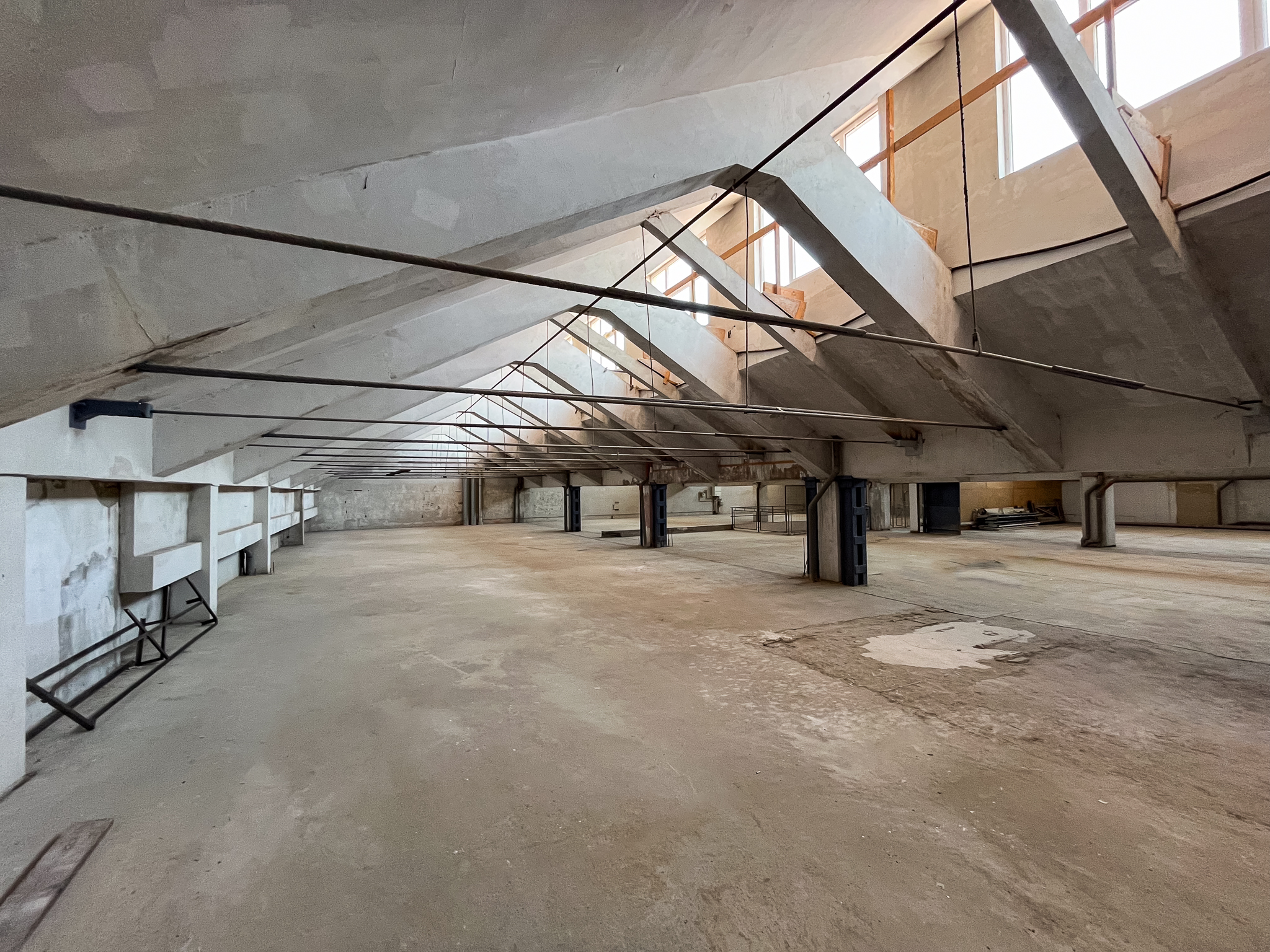 Egyenletes szórt fény egy igény szerint kialakítható impozáns ipari csarnokban, ami az indusztriális dizájnelemek miatt modern kreatív irodának vagy műhelynek is kialakítható.