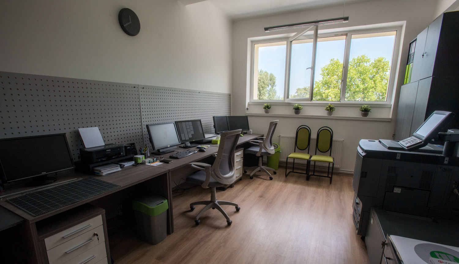 Kiadó irodák az üzleti központ IV. épület északi oldalán az 1. emeleten. 23 és 24 m2 Világos, klímázott, helyreállított helyiségcsoport, felújított vizesblokkal és teakonyhával.