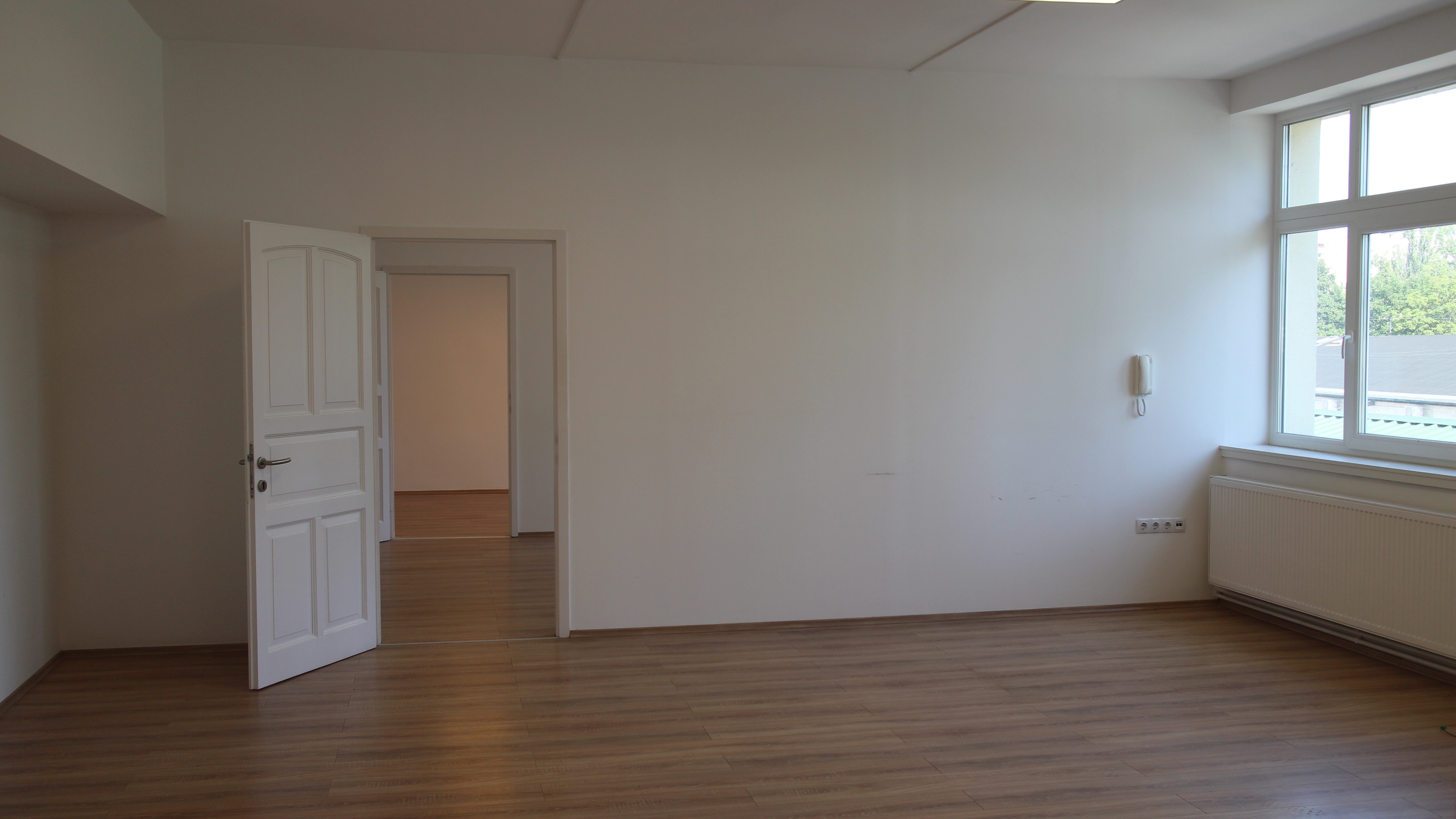 Frissen felújított irodaházban nagy ablakfelületek, egyenletes szórt fény és hangulatos terek.