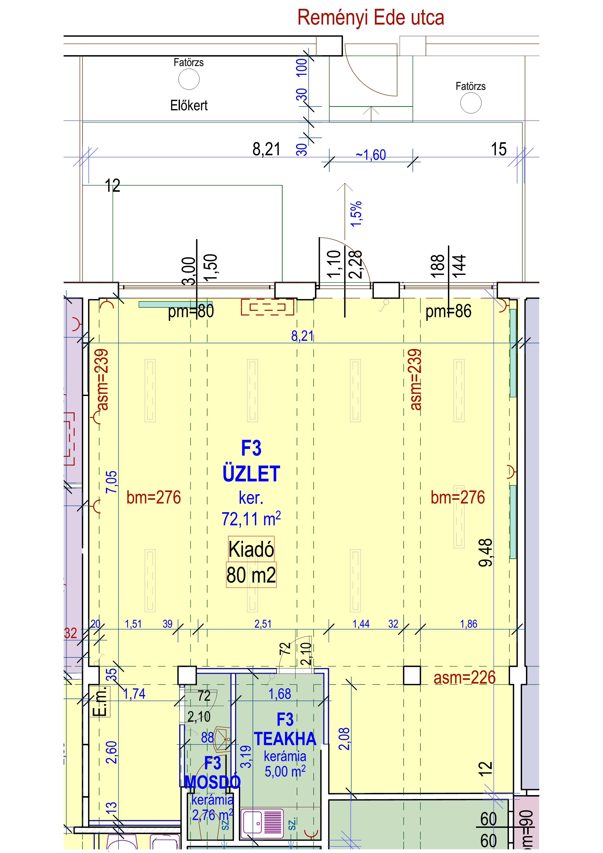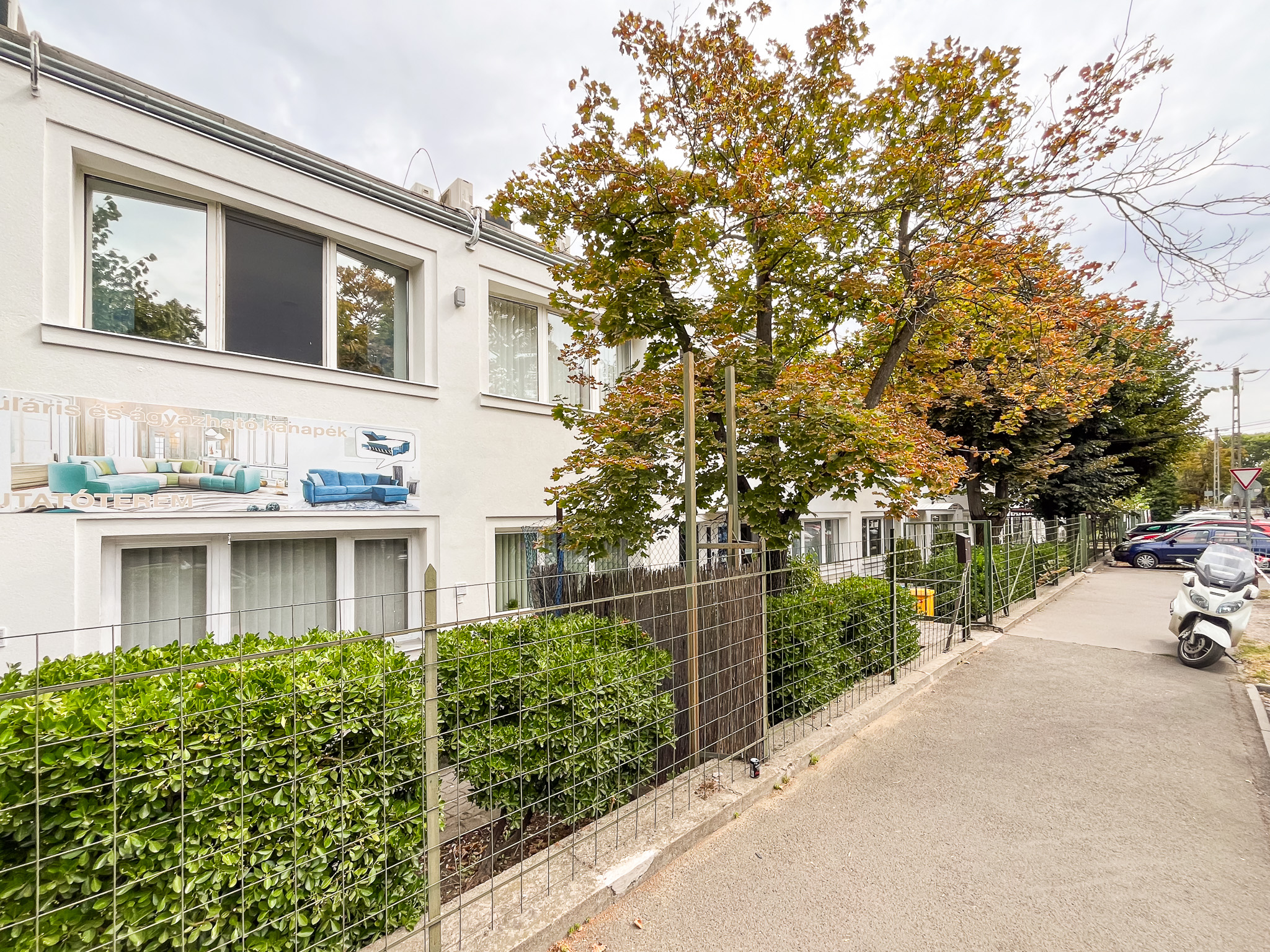 Üzletnek, bemutatóteremnek alkalmas zöldlombos utcára néző bérlemény, kellemes saját előkerttel.